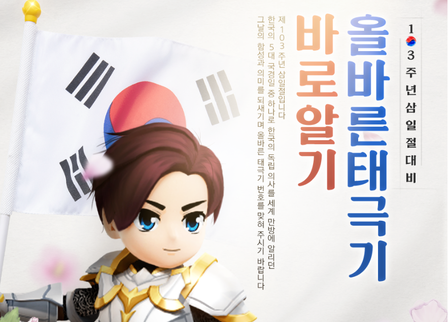 이벤트 기간 동안 태극기를 들고있는 캐릭터를 확인하고