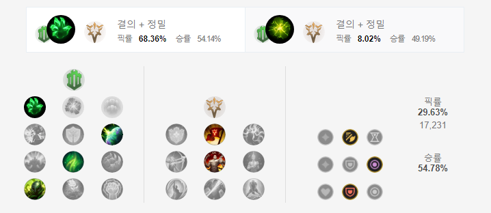 칼바람 탐켄치 룬은 결의 + 정밀을 선택합니다.