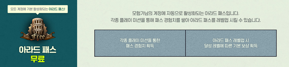 모든 계정에 기본 활성화되는 아라드 패스는