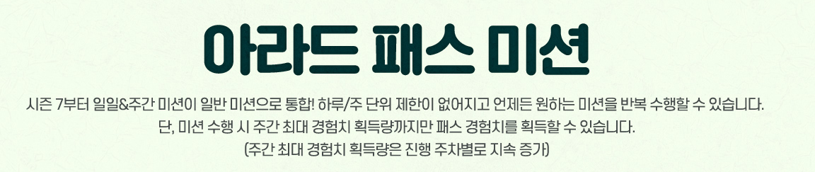 아라드패스 시즌7 기간 : 2022년3월17일(목) ~ 2022년 5월 12일(목) 점검 전