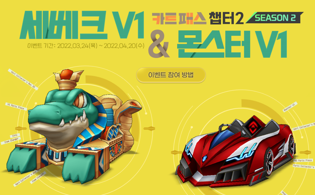 오늘은 카트라이더 카트 패스 이벤트!! 세베크 v1, 몬스터 v1 정보 포스팅을 해보도록 하겠습니다.