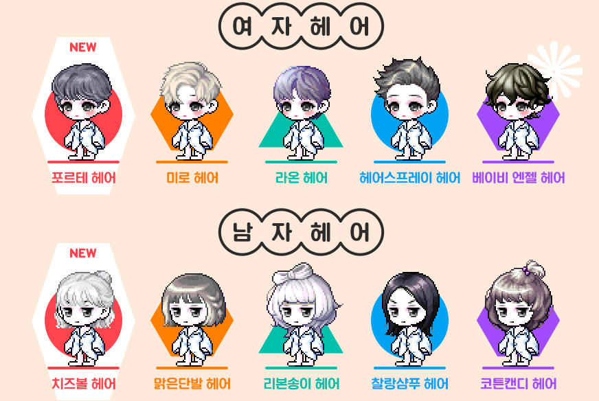 여자 헤어는 다 예쁘고 남자 헤어는 치즈볼, 리본송이, 코튼캔디가 예쁘네요 ㅎㅎㅎ 아쉬운건 장발 헤어가 없는게 쪼매 아쉽습니다.