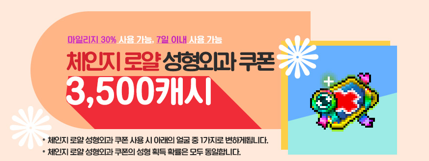 이상으로 메이플스토리 체인지 로얄 헤어 쿠폰 & 성형외과 쿠폰 알아보자~ 포스팅을 마치도록 하겠습니다.