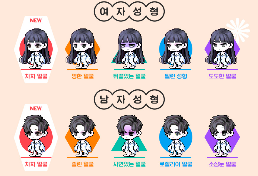 NEW 차차 얼굴, 졸린 얼굴, 사연있는 얼굴, 로잘리아 얼굴, 소심눈 얼굴