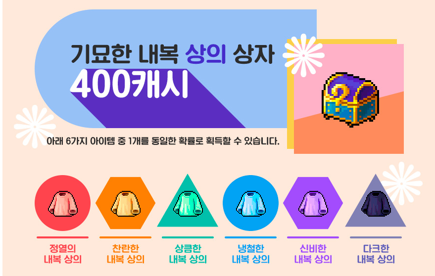 기묘한 내복 상의 상자는 현재 400캐시에 판매되고 있습니다.