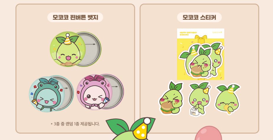 스페셜 팝업 스토어 맘스터치랩 가든역삼점에 모코코 생일파티세트를 주문하면 모코코 핀버튼 뱃지 + 모코코 스티커를 추가로 받을 수 있다고합니다. 가까우신 분들은 굉장히 부럽네요ㅠㅠ 전 지방이라 아쉽습니다ㅠㅠㅠㅠㅠ.