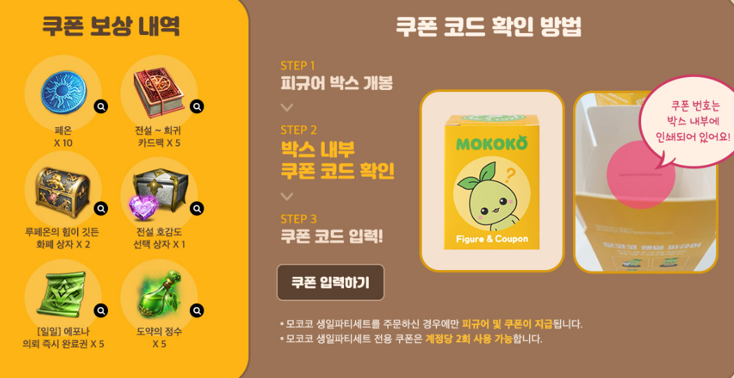 *모코코 생일파티세트 전용 쿠폰은 계정당 2회 사용 가능합니다.