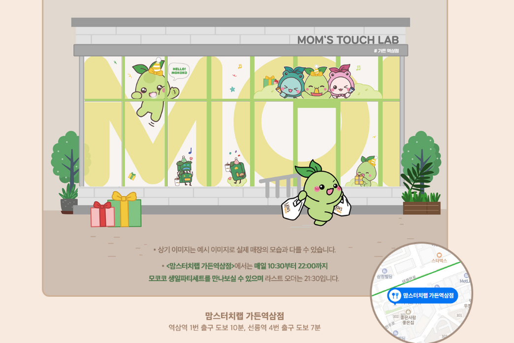 2022년 4월 16일(토) 5월 15일(일) 모코코 생일파티 테마의 스페셜 팝업 스토어가 맘스터치랩 가든역삼점에 오픈된다고합니다.