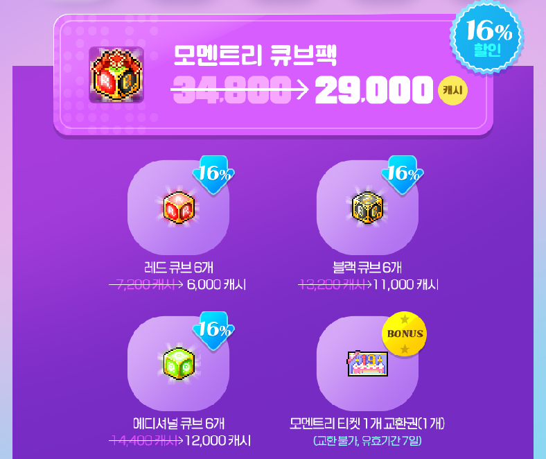 *리부트 월드에서는 모멘트리 큐브팩을 구매할 수 없습니다.