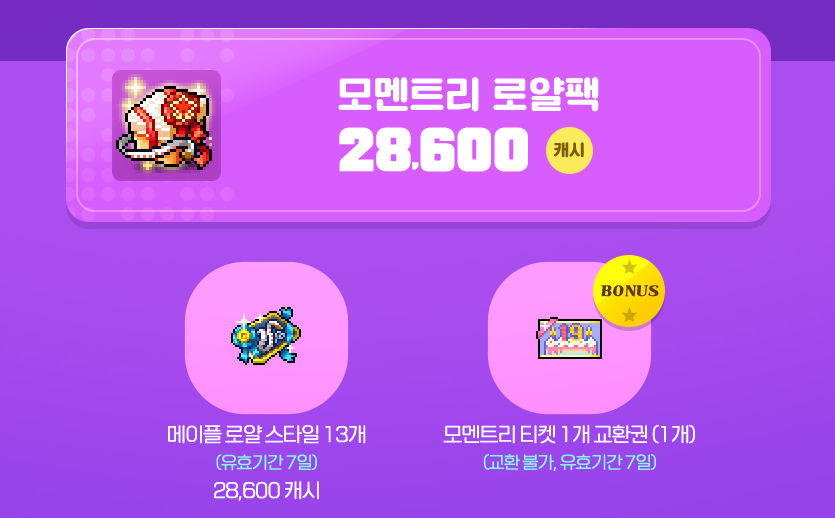 메이플 로얄 스타일 13개, 모멘트리 티켓 1개 교환권 1개