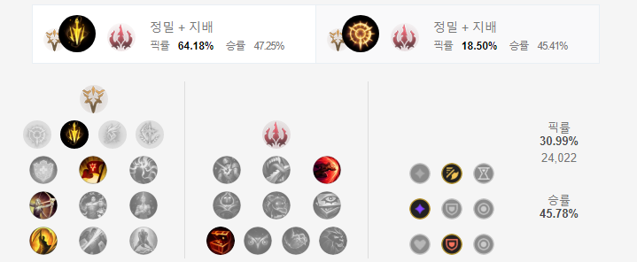 칼바람 킨드레드 룬은 정밀 + 지배를 선택합니다.