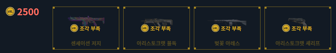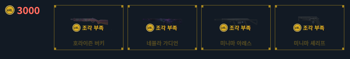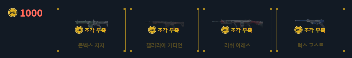 일반전 혹은 경쟁전 10회승리 : VAL 조각 500