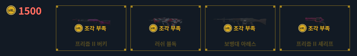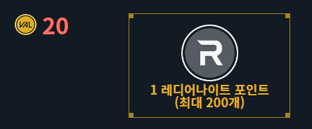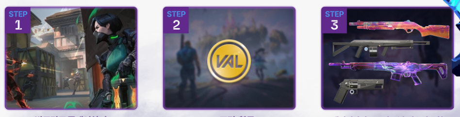 이벤트 기간동안 발로란트 플레이하면 획득할 수 있는 VAL 조각으로 레디어나이트 포인트 및 총기스킨으로 교환할 수 있습니다.