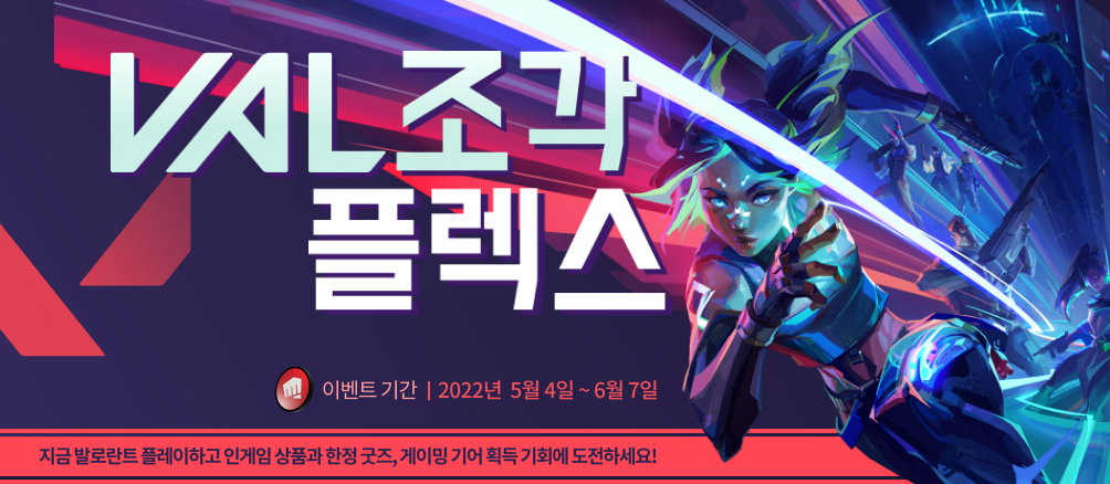 발로란트 인게임 상품과 한정 굿즈, 게이밍 기어를 획득할 수 있는 발로란트 VAL 조각 플렉스 이벤트 자세하게 알아보도록 할까요?????????????????