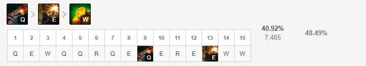 우르프 갱플랭크는 Q > E > W 순으로 스킬을 마스터합니다.