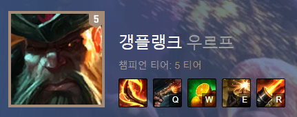 우르프 갱플랭크는 현재 5티어에 자리잡고 있습니다.