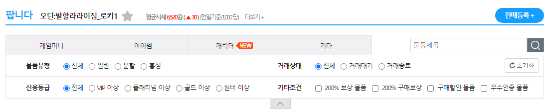 아이템매니아에 접속 후 검색창에 오딘을 검색하시면