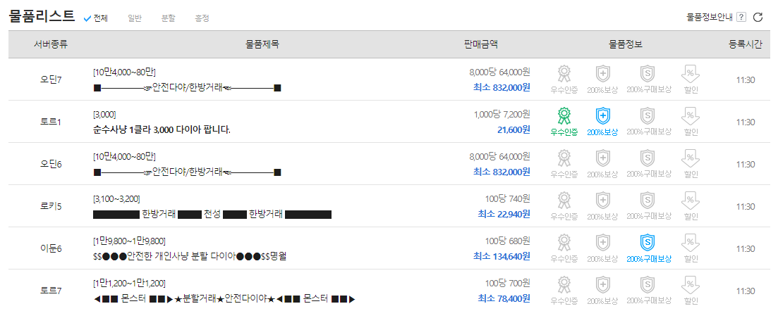 많은 유저들이 이용하기 때문에 아이템도 많고 사기 걱정 없이 빠르게 아이템을 구매할 수 있어서 자주 이용합니다.