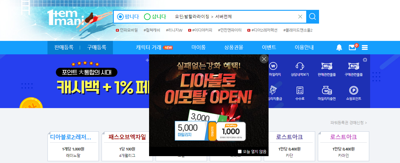 오딘 다이아 거래를 하고 싶으신 분들께 아이템매니아 사이트를 추천해드려요~!