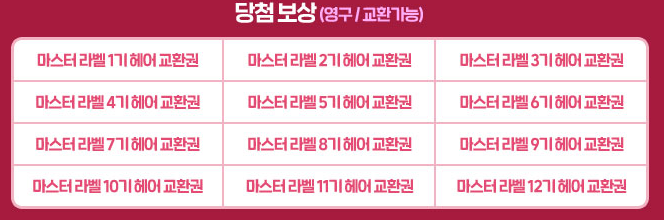 *리부트 월드에서는 캐시샵에 출시되었던 9~12기 마스터 라벨 풀패키지 교환권만 획득할 수 있습니다.