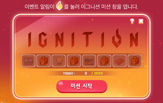 일일 미션을 달성하면 아이템 보상을 획득할 수 있는 이그니션 워밍업 이벤트!!