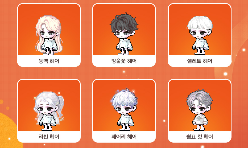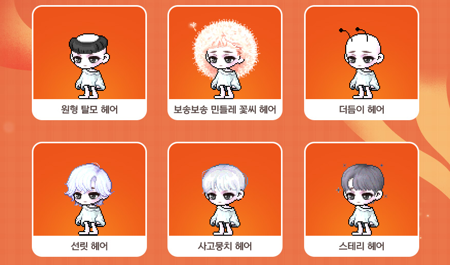 원형 탈모 헤어 / 보송보송 민들레 꽃씨 헤어 / 더듬이 헤어 / 선릿 헤어 / 사고뭉치 헤어 / 스테리 헤어
