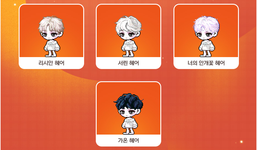 * 금손 은손 헤어 쿠폰을 사용하면 아래 헤어 중 1가지를 선택하여 변경할 수 있습니다.