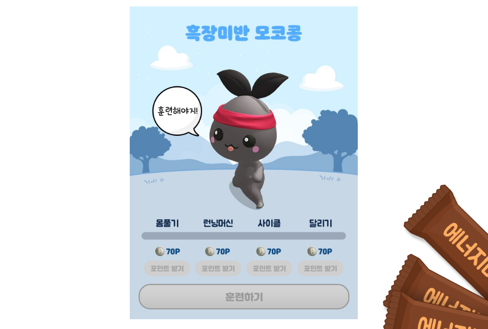 2. 훈련시킬 모코콩에게 에너지바를 사용해 훈련시킵니다.