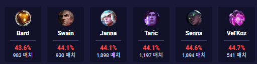 바드, 스웨인, 잔나, 타릭 정도입니다.