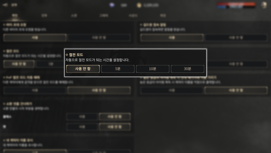 [설정] – [게임] – [PvP 절전 모드 자동 해제] – [사용]을 통하여 절전 모드 자동 해제를 사용할 수 있습니다.
