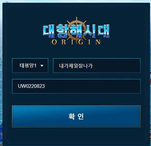 서버를 선택해 주시고, 대항해시대 오리진의 선단명을 입력해 주세요.
