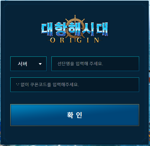 쿠폰 메뉴를 클릭하시면 대항해시대 오리진의 쿠폰 입력 창이 뜹니다.