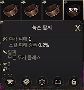 5일정도만 지나면 녹슨팔찌가 떨어지는데 다시 3시간정도 사냥해서 100개를 다시 채웁니다.