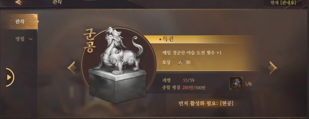 탐방은 장수 승급하는 데 중요하니 관리해주세요.