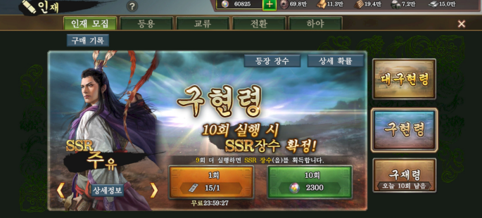 모집은 고급 현자 모집령, 현자 모집령, 인재 모집령 등 3가지로 나뉩니다.