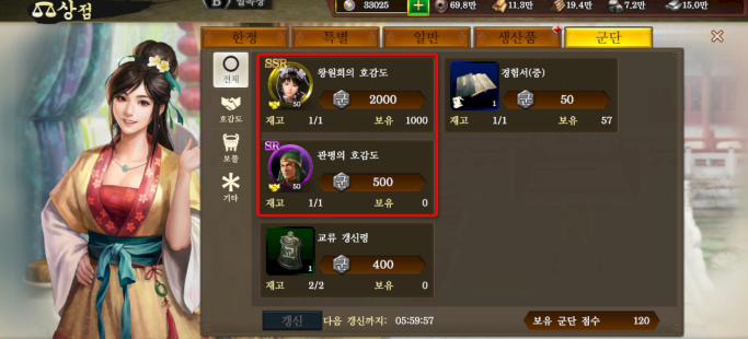 (3)상점에서 군단 점수를 사용하여 호감도를 구매