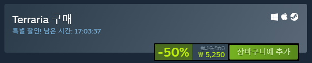 테라리아는 스팀 겨울 할인 을 통해 5,250원에 구매하실 수 있습니다.