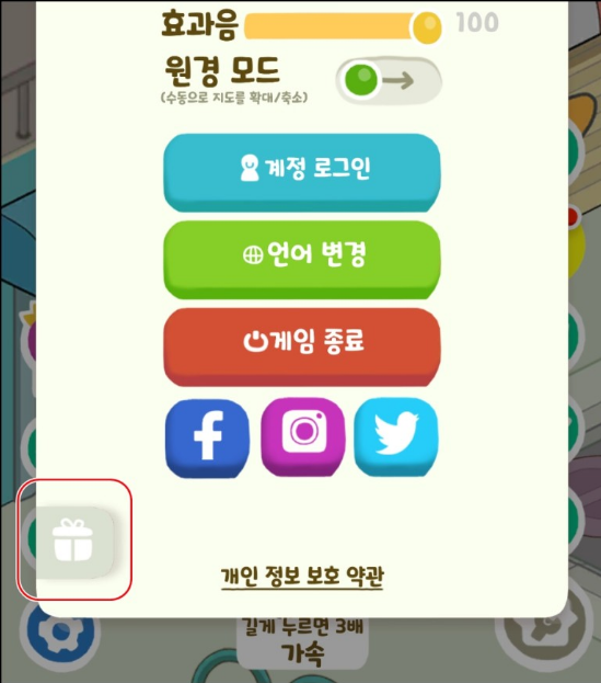 그러면 환경설정 창이 뜹니다. 하단 선물박스 버튼을 다시 클릭해 주세요.