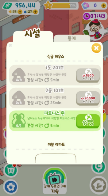 하나 둘 씩 진행하다 보면 마치 내가 건물주가 된 것처럼 대리만족을 할 수 있는 그런 게임이라고도 할 수 있겠습니다.