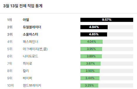 메이플스토리 직업 순위 전체 통계 (3월 13일자)