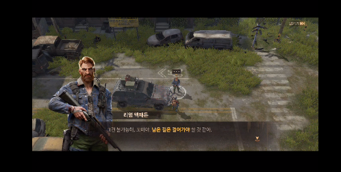 좀비를 모두 쓸어버리고 장벽 안으로 진입하게 되는 세사람