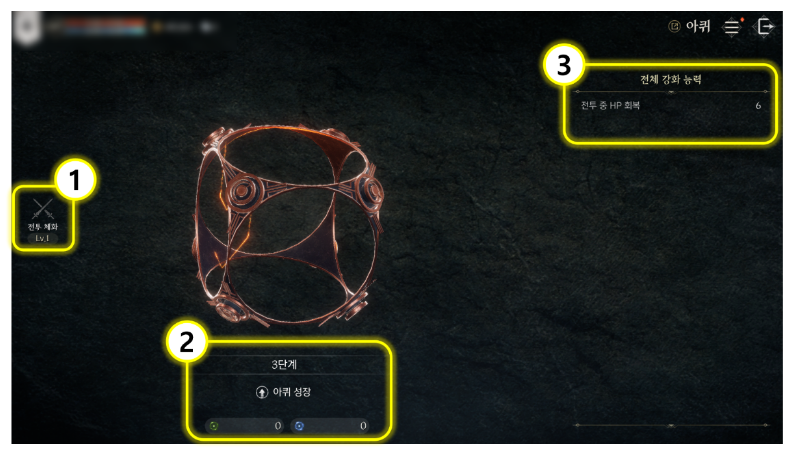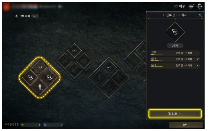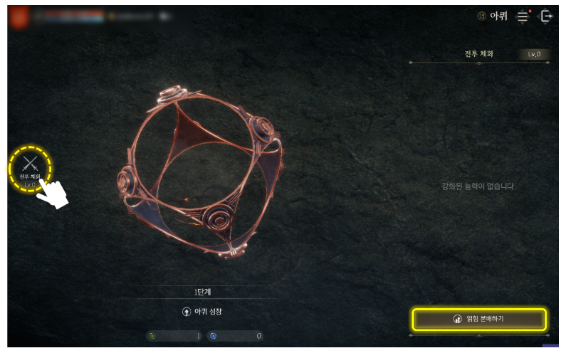 아퀴 성장에서 얻은 얽힘 결정을 통해 원하는 능력치를 강화할 수 있습니다.