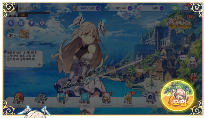 유적 탐색은 '모험' 메뉴에서 이용할 수 있습니다. 하단메뉴 중 [모험] 터치 후 들어가서 자세히 알아보겠습니다.