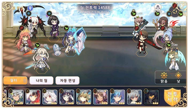 - 방어자는 편성된 방어 팀을 활용, 자동으로 전투합니다.