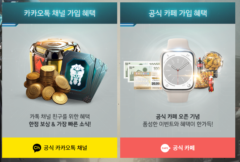 카톡 채널 가입 혜택으로 한정 보상이 준비되어 있다고 하네요!