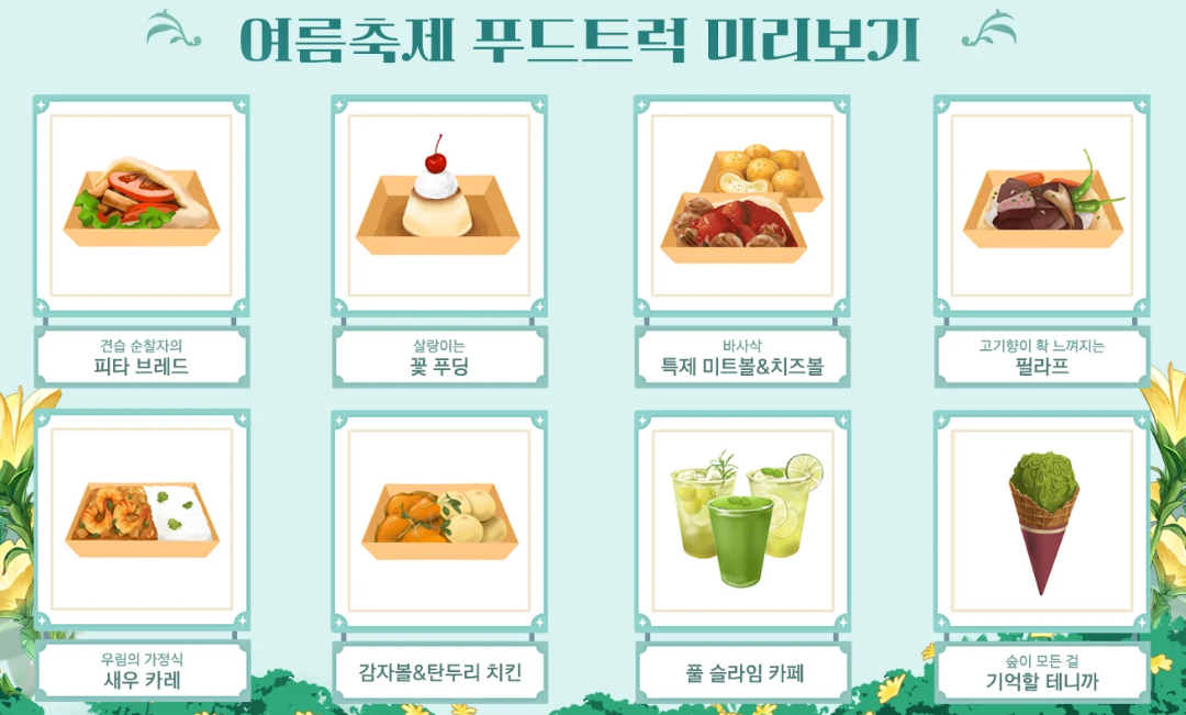 원신 2023 여름축제 웰컴키트에 풀 슬라임 풍선 준다? 푸드트럭에 어떤 음식이?