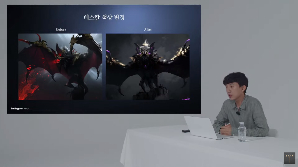그 외 아바타를 비롯해 신직업 소울이터 일러스트에서 노출도가 줄어든 부분, 가디언 베스칼의 붉은색이 보라색으로 변경된 부분들은 중국 서비스와 관련이 없는 것으로 밝혀졌습니다. 금 CCO는 "아바타나 일러스트 같은 부분들 모두 내부에서 더 완성도가 높다고 생각한 디자인으로 변경했을 뿐이다. 베스칼의 경우는 공개 당시 타 게임 표절 이슈가 있어서 색을 변경하기로 결정한 것"이라고 설명했다네요.