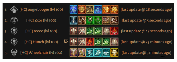 디아블로 4 비공식 래더보드 d4armoy에 따르면 시즌1 소프트코어, 하드코어 모드 100레벨 달성자는 모두 23일 등장했습니다. 소프트코어 모드는 Leguan, Vega, Xegly 유저로 구성된 파티이며 하드코어 모드는 oogie boogie, Zxor 유저로 구성된 파티랍니다.