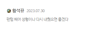 "팬텀 헤어 성형이나 다시 내줬으면 좋겠다"
