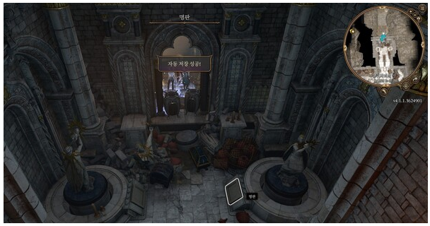수도원 안쪽 인퀴지터의 방에서 인퀴지터를 무시하거나 전투한 뒤 왼쪽에 있는 방으로 이동합니다. 2개의 조각상 중 서쪽 조각상이 움직이지 않으므로, 기름을 바르고 망치와 같은 둔기로 한대 쳐 줍니다. 이후 수정 트랩을 해제하면 라샌더의 피를 받습니다. 패널에 상호작용해 여명 마스터의 문장을 넣는 것을 잊지 맙시다.